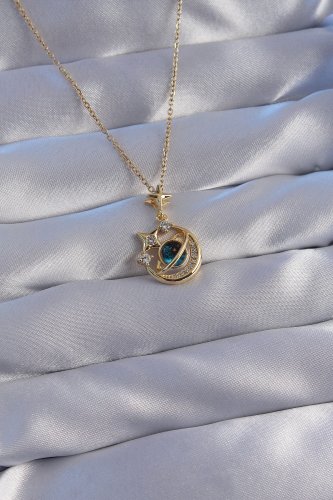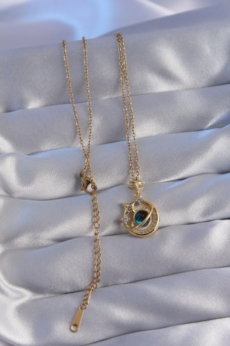 316L Çelik Zincir Gold Renk Zirkon Taşlı Kutup Yıldızı Figürlü Gezegen Kolye