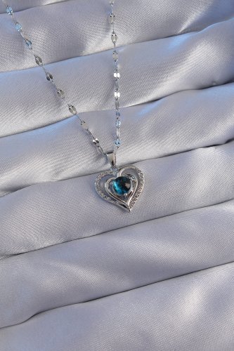 316L Çelik Zincir Gümüş Renk Zirkon Taşlı Kalp Figürlü Gezegen Kolye