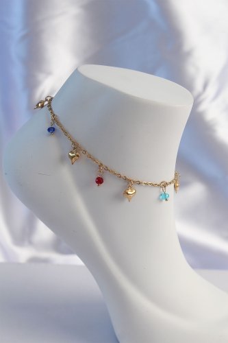 316L Çelik Gold Renk Minimal Kalp Model Renkli Zirkon Taşlı Halhal