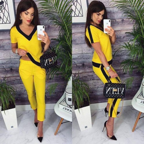 Kadın V Yaka, Yandan Şeritli İki İplik Kumaş İkili Takım