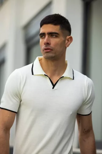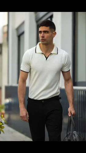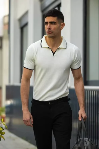 Unisex Yakalı Triko T-Shirt - Beyaz