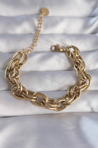 316L Çelik Gold Renk Çift Halka Zincirli Bileklik