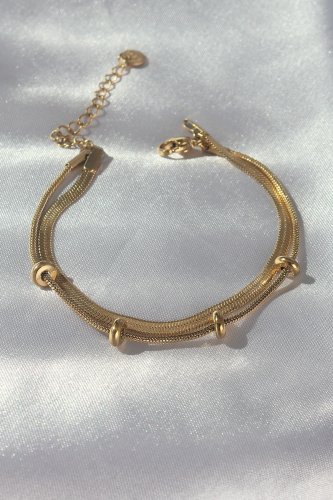 316L Çelik Gold Renk İtalyan Çift Zincirli Bileklik