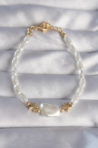Gold Renk Sıralı İnci Taşlı Yıldız Figürlü Bileklik