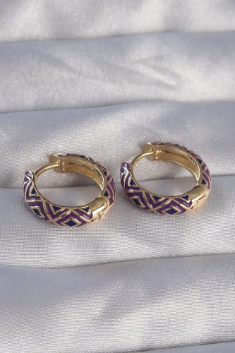 Pirinç Gold Renk Mor Etnik Desenli Halka Küpe