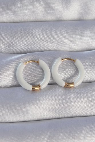 316L Çelik Gold Renk Beyaz Mineli Halka Küpe