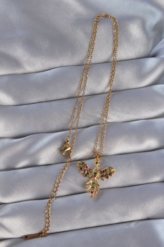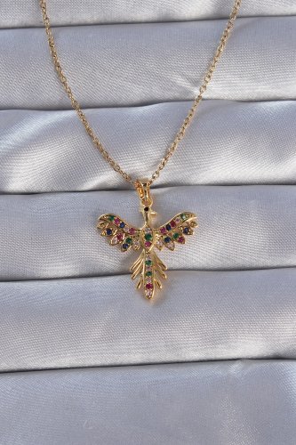 316L Çelik Zincirli Gold Renk Renkli Zirkon Taşlı Anka Kuşu Tasarımlı Kolye