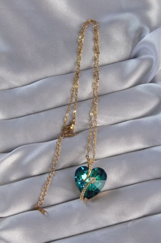 316L Çelik Zincirli Gold Zirkon Taşlı Yıldız Detay Kristal Taşlı Mavi Kalp Tasarımlı Kolye