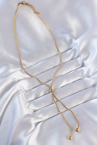 316L Çelik Gold Renk Önden Ayarlamalı Topçuk Detay Asansörlü Kolye