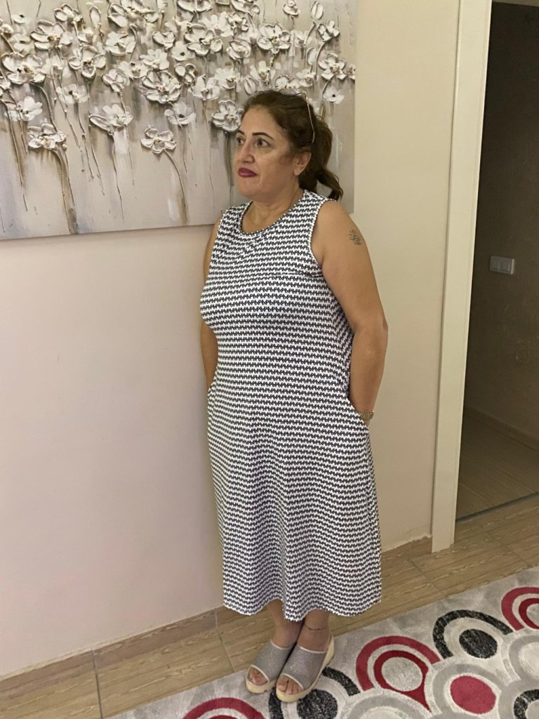 Kadın bisiklet yaka desenli sandy midi elbise