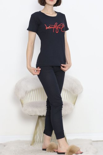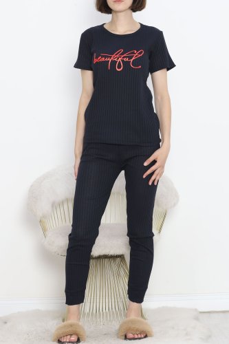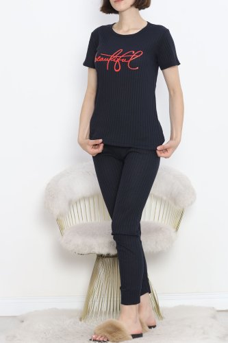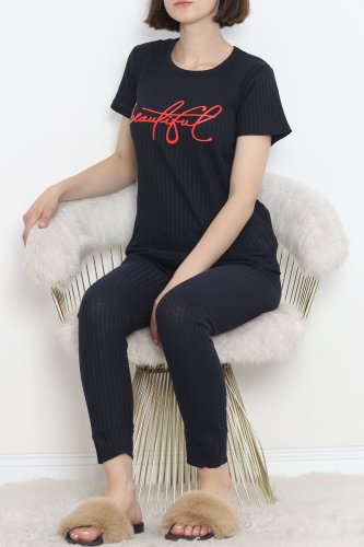 Baskılı Fitilli Pijama Takımı Lacivertkırmızı