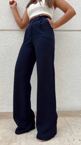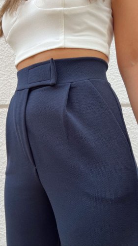 Kadın krep kumaş cırtlı pileli arkada fileto cep detaylı pantolon