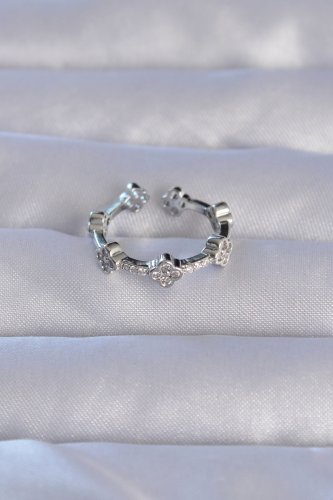 Pirinç Gümüş Renk Zirkon Taşlı Yonca Model Ayarlanabilir Yüzük