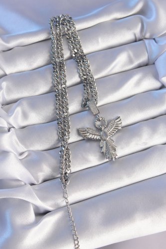 316L Çelik Gümüş Renk Zirkon Taşlı Anka Kuşu Model Kolye