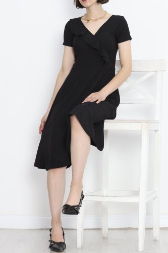 Kruvaze Kimono Elbise Siyah