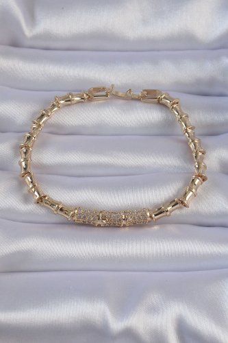 Pirinç Gold Renk Zirkon Taşlı Kalın Kemik Model Bileklik