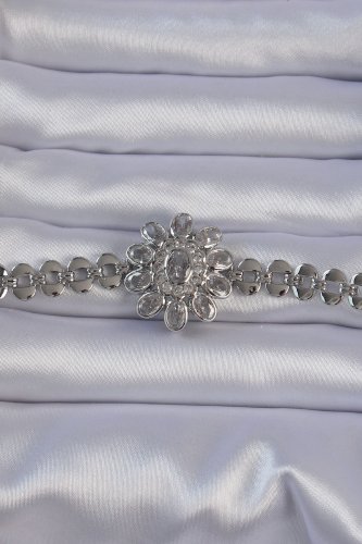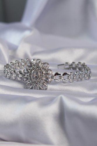 Pirinç Gümüş Renk İri Zirkon Taşlı Çiçek Figürlü Bileklik