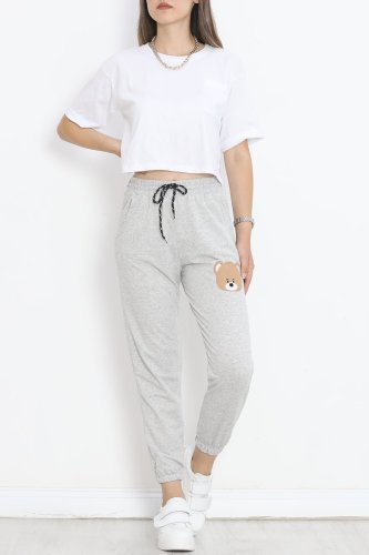 Nakışlı Eşofman Altı Gri