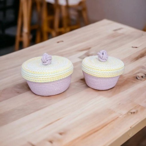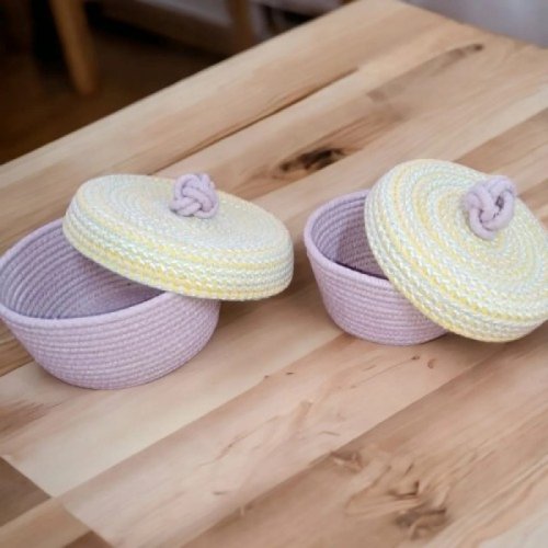 Decohandy Handmade Jüt Sepet Organizer 2li Takım Lila Kapaklı