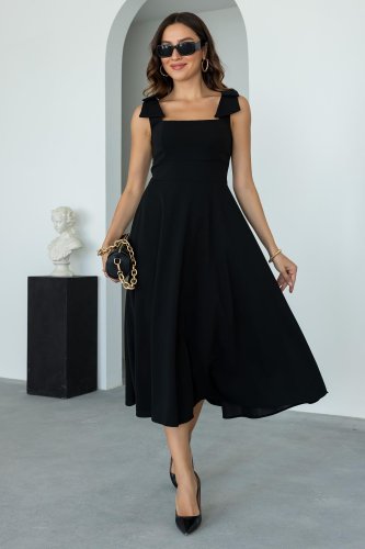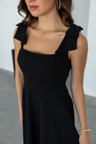 Kadın krep kumaş kare yaka omuzda fiyonk detaylı midi boy elbise