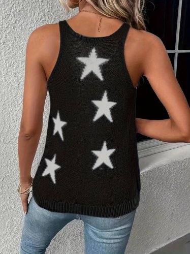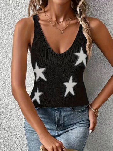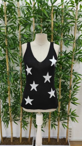 Kadın ince askılı derin v yakalı yıldız desenli triko bluz