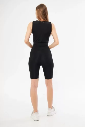 Kolsuz Dalgiç Baskılı Crop - Siyah