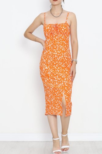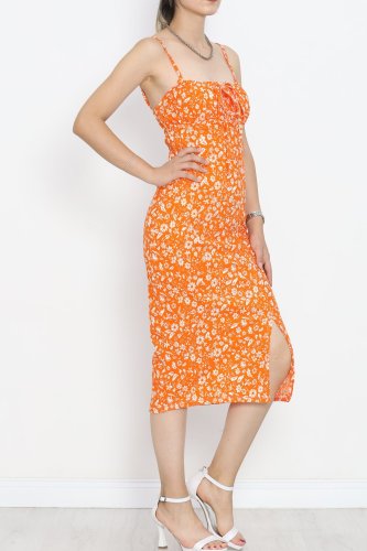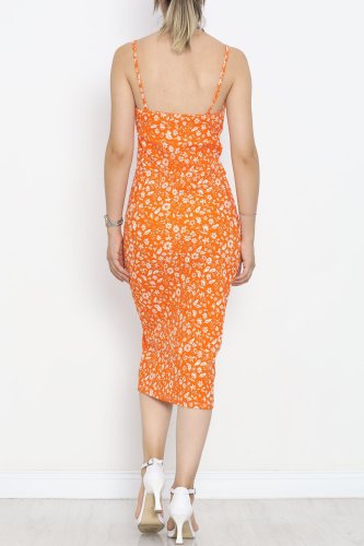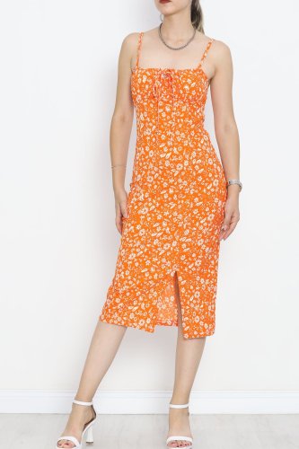 Askılı Desenli Elbise Turuncuçiçekli