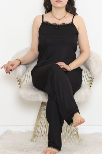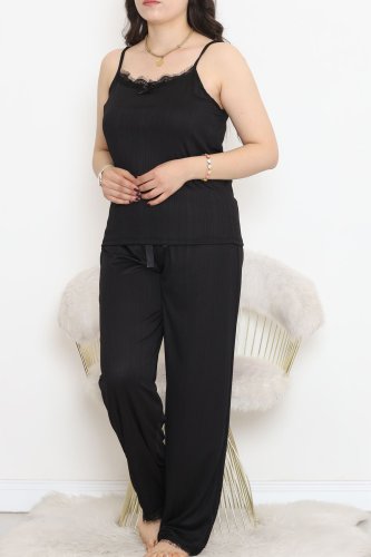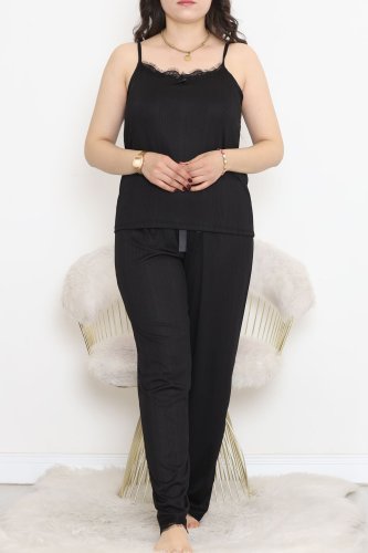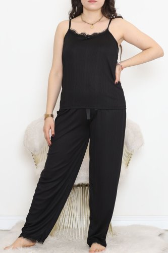 İp Askılı Battal Pijama Takımı Koyusiyah