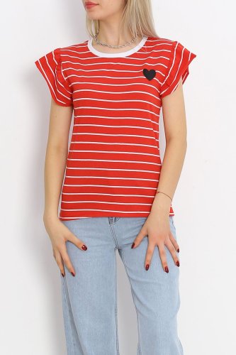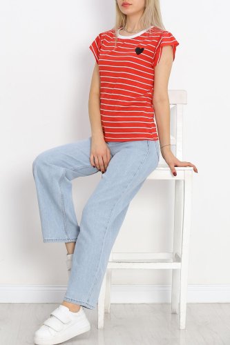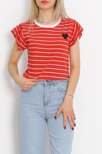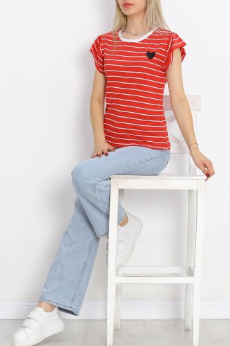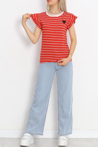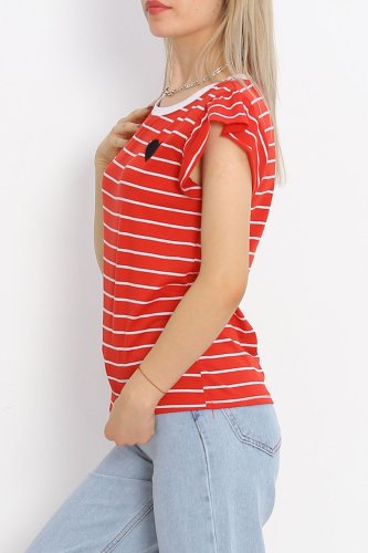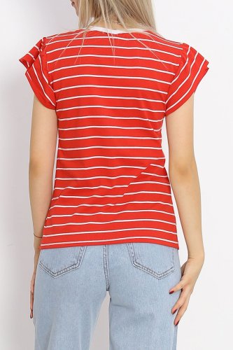 Nakışlı Kol Fırfır Tişört Kırmızı