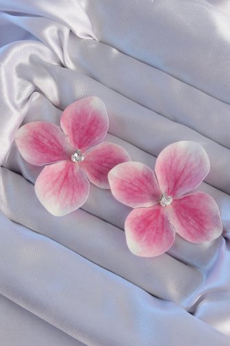 Pembe Renk Zirkon Taşlı Kalp Detay Orkide Çiçeği Küpe