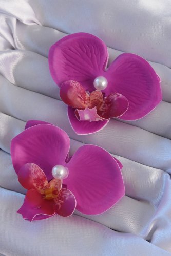 Fuşya Renk İnci Detay Orkide Çiçeği Küpe
