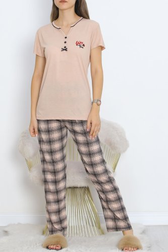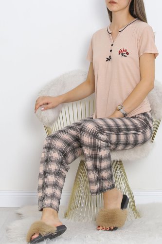 Armut Yaka Ara Biyeli Kısa Kollu Takım Somon
