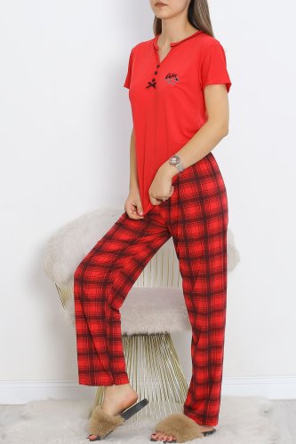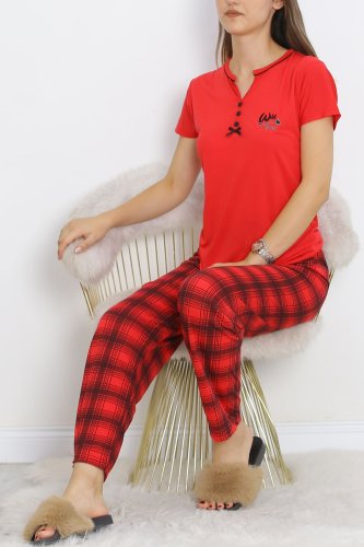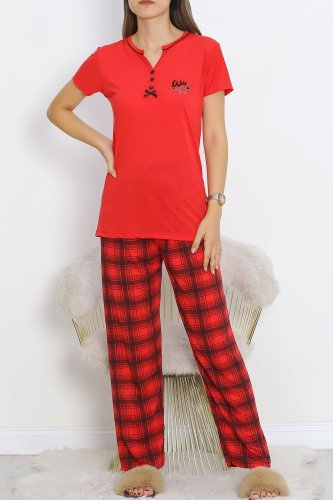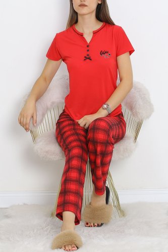 Armut Yaka Ara Biyeli Kısa Kollu Takım Kırmızı