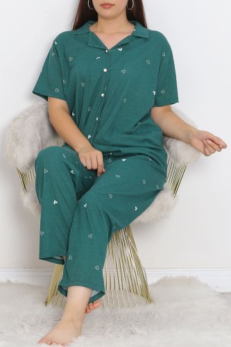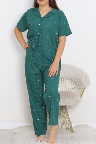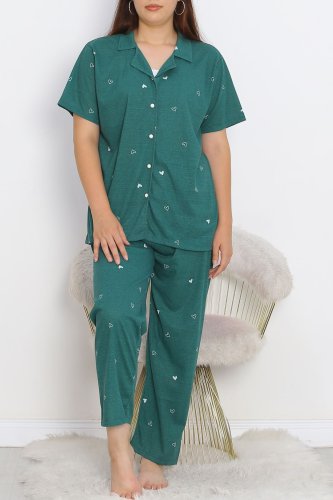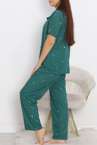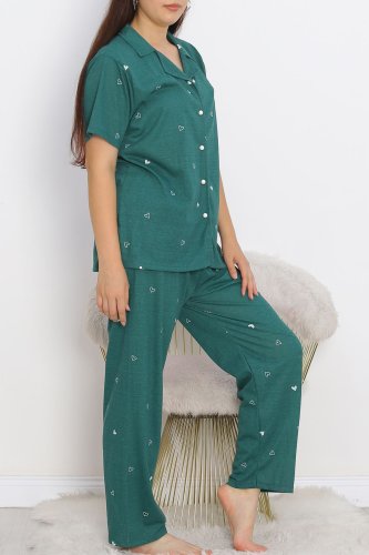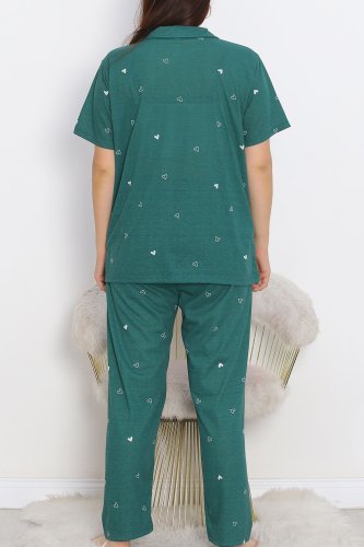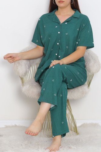 Baskılı Rotasyon Gömlek Takım Zümrüt