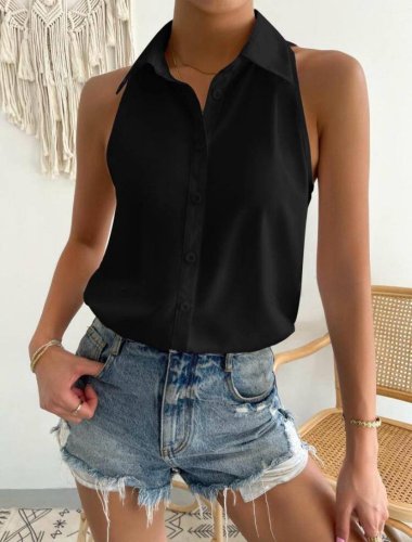 Kadın Sıfır Kol Dokuma Viskon Kumaş Gömlek