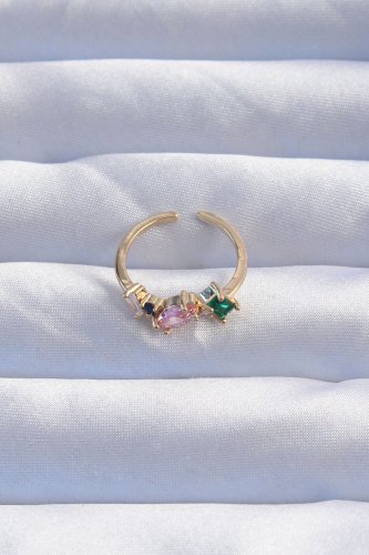 Pirinç Gold Renk Renkli Zirkon Taşlı Ayarlanabilir Yüzük