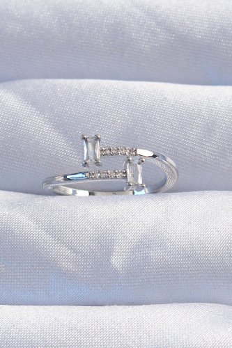 Pirinç Gümüş Renk Zirkon Taşlı Geometrik Ayarlanabilir Yüzük