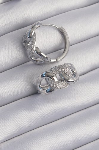 Pirinç Gümüş Renk Zirkon Taşlı Samanyolu Küpe