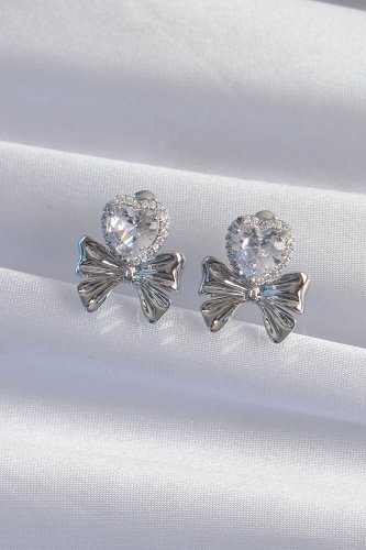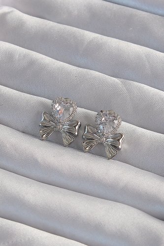 Pirinç Gümüş Renk Zirkon Taşlı Kalp Model Fiyonk Küpe
