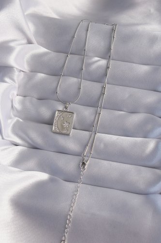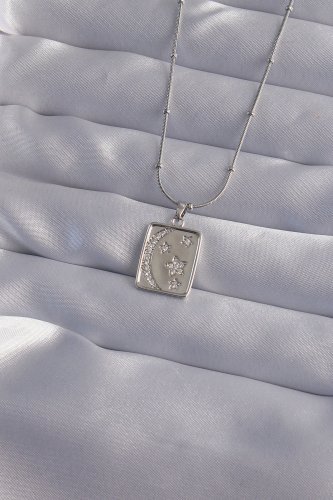 316L Çelik Zincir Gümüş Renk Zirkon Taşlı Ay Yıldız Figürlü Tarot Kolye