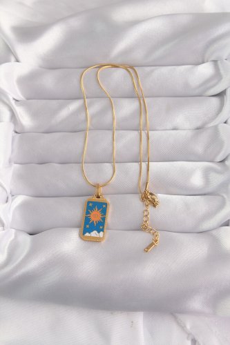316L Çelik Gold Renk Mavi Mineli Güneş Model Tarot Kolye