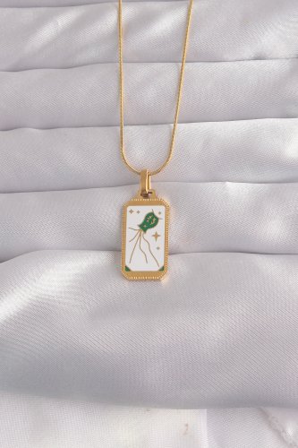 316L Çelik Gold Renk Beyaz Mineli Tarot Kolye