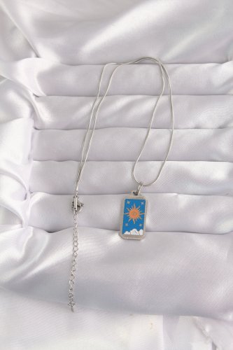 316L Çelik Gümüş Renk Mavi Mineli Güneş Model Tarot Kolye
