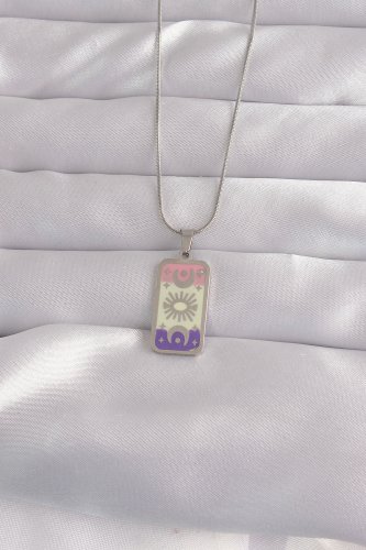 316L Çelik Gümüş Renk Karışık Mineli Ay Figür Tarot Kolye