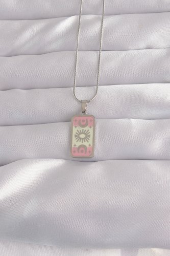 316L Çelik Gümüş Renk Pembe Mineli Ay Figür Tarot Kolye