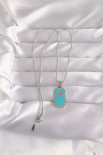 316L Çelik Gümüş Renk Mavi Mineli Tarot Kolye