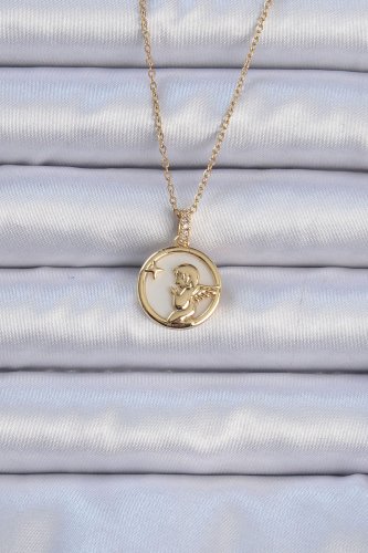 316L Çelik Zincir Altın Renk Zirkon Taşlı Mineli Melek Kolye