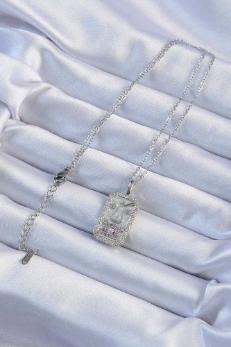 316L Çelik Zincir Gümüş Renk Lila Zirkon Taşlı Tarot Kolye