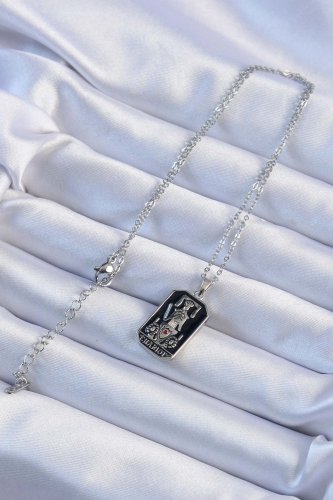 316L Çelik Zincir Gümüş Renk Siyah Mineli Tarot Kolye
