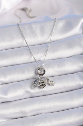 316L Çelik Gümüş Renk Zirkon Taş Detay Çocuk Figür Charm Model Kadın Kolye